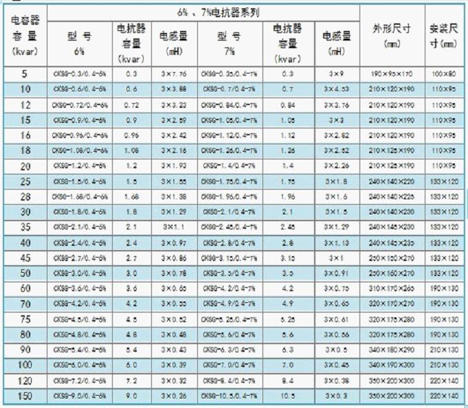 提 示:3次、5次、7次諧波一般選用電抗率為6%或7%的;3次諧波較嚴重,請選用電抗率為12%的。選擇不當將造成諧波更為嚴重。
